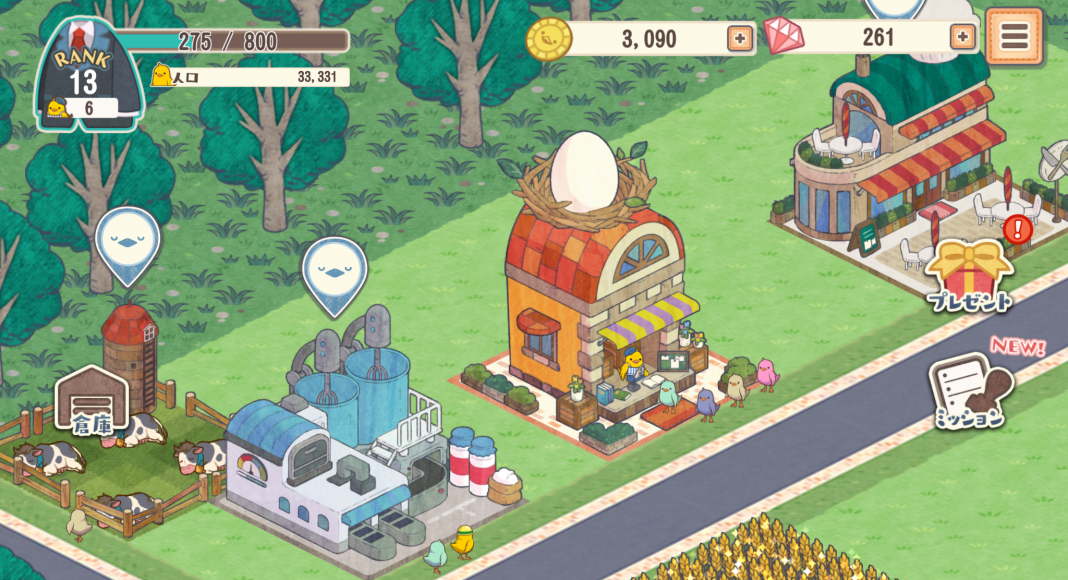 『ひよこ社長のまちづくり』のストーリを紹介します。主人公である”ひよこ社長”は、ちいさな街”ピヨタウン”で、自分のお店の切り盛りを頑張っています。そして、レベルアップして事業が軌道に乗ってきたタイミングで、農業・漁業区画の社長の”しじみちゃん”から投資のお願いをされるのです。