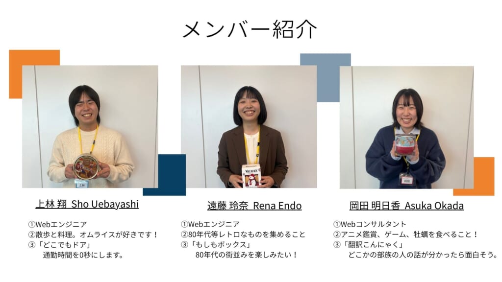 内定者顔合わせ会は、終始和やかな雰囲気の中、内定者5名の個性や思いが伝わる貴重な時間になりました。今後の活躍に期待大ですね!さて今回は社内イベントの様子をご紹介しましたが、社外の方にもご参加いただけるイベントのご案内です!12月16日(木)人間中心設計専門家ウメムラタカシによる「自分のスキルを人間中心設計のレンズで棚卸してみる会」を開催します。どなたも無料でご参加いただけるイベントになっているので、ぜひお気軽にお申し込みください。お申し込みは、connpassもしくはpeatixにて!